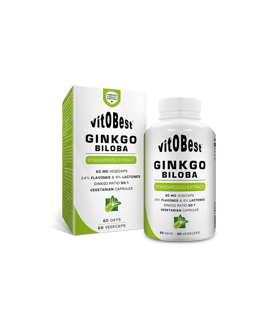 Ginkgo Biloba, de Vitobest®, es una fórmula elaborada a partir del extracto seco de la planta homónima (24 % flavonas y 6 % lactonas). Por sus propiedades antioxidantes, vasodilatadoras y neuroprotectoras, es una de las especies vegetales más usadas en naturopatía.